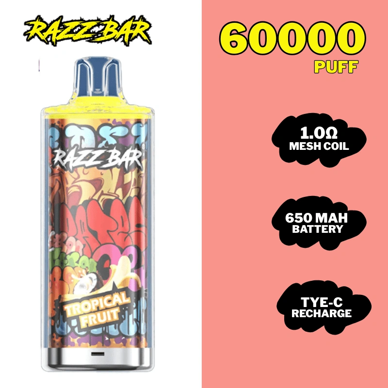 Construido para sesiones largas, el RAZZ BAR 60000 combina una estructura de doble tanque con una bobina de malla avanzada para mantener la entrega de sabor limpia y constante desde el primer puff hasta el último. La carcasa transparente y cristalina no solo resalta la construcción de alta calidad, sino que también permite a los usuarios verificar visualmente los niveles de e-líquido, reduciendo el uso indebido y las quejas de los clientes a nivel minorista.