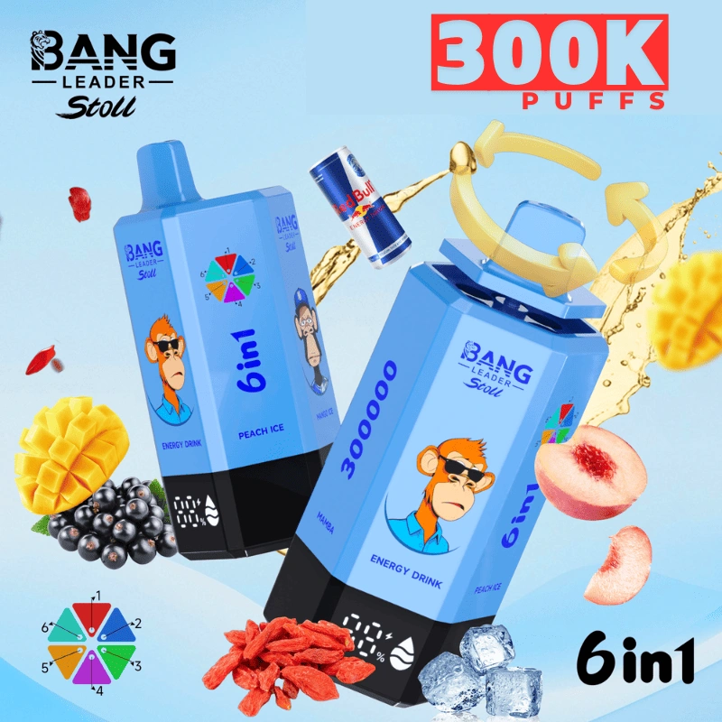 Bang Leader Stoll 300K is a long-life disposable vape featuring 300,000 puffs, a 6-in-1 flavor system, smart OLED display, USB-C charging, and 2% nicotine output—built for consistent performance and everyday reliability.